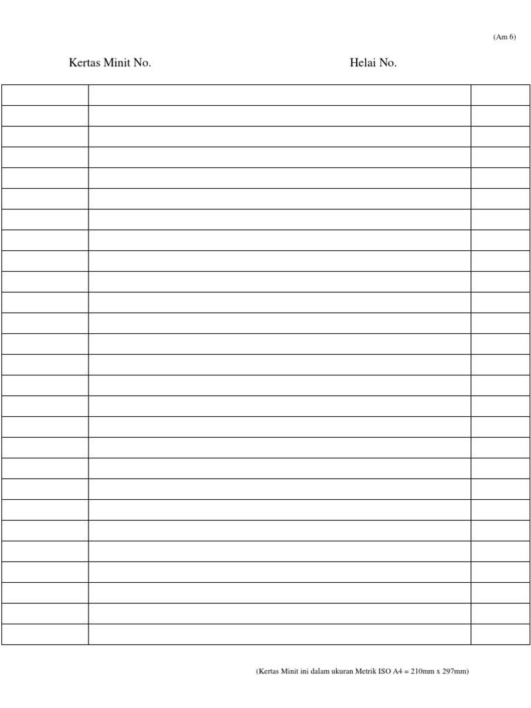 Download Full PDF Package. Kertas Minit AM 6 Kertas minit ini dalam ukuran Metrik ISO A4 210mm x 297mm 1 Pack. A i ii 12 PEMBUKAAN 8.